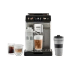 Experience barista-quality coffee with the De’Longhi Eletta Explore, a fully automatic bean-to-cup coffee machine with 50+ coffee recipes, including Espresso, Americano, Latte, and Cold Brew. Featuring Cold Extraction Technology, enjoy refreshing Cold Brew in under 5 minutes. The LatteCrema Hot & Cool System delivers perfect hot and cold milk foam. Customize drinks effortlessly with the 3.5” TFT touchscreen and Wi-Fi smart connectivity. The Bean Adapt Technology ensures optimal coffee extraction for every bean type. Elevate your coffee experience with its sleek, modern design, perfect for home or office.